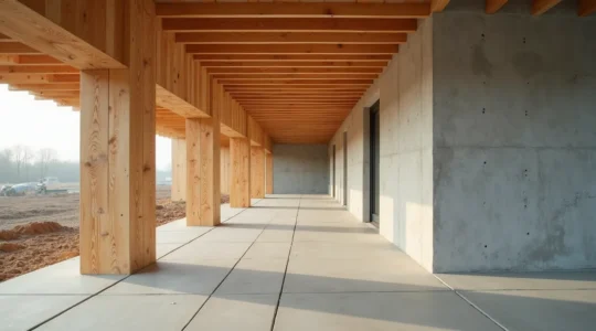 Les bétons bas carbone, qui remplacent une partie du ciment Portland par des ajouts cimentaires, peuvent réduire de 30 à 60 % les émissions associées au béton. La structure en bois, traditionnelle au Québec, stocke le carbone et présente généralement un bilan environnemental favorable, surtout lorsque le bois provient de forêts gérées durablement.