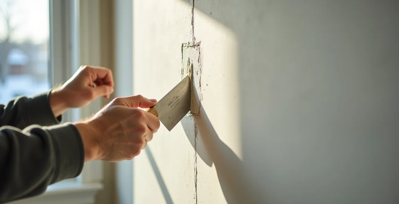 Le principal coupable des fissures est une gestion incorrecte de l’eau et de la température. Une pièce trop froide ou des courants d’air vont ralentir la réaction chimique de surface tout en laissant le cœur du composé durcir, créant des tensions internes qui mènent inévitablement à des microfissures. De même, appliquer une couche unique et épaisse est une erreur fondamentale. Le volume important de composé génère plus de chaleur et de retrait lors de la prise, ce qui augmente considérablement le risque de fendillement. Il est crucial de respecter le principe de couches multiples et minces.